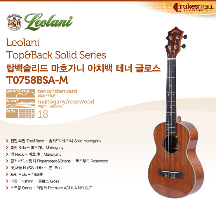 [Leolani] 탑백솔리드 마호가니 아치백 테너 글로스 T0758BSA-M